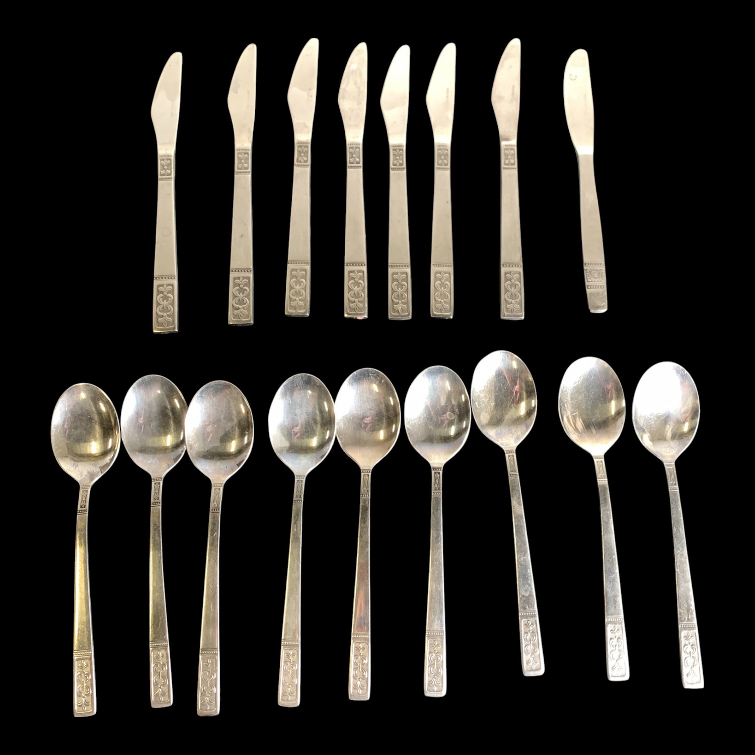 Kniv, längd ca: 20 cm.Sked, längd ca: 19 cm.