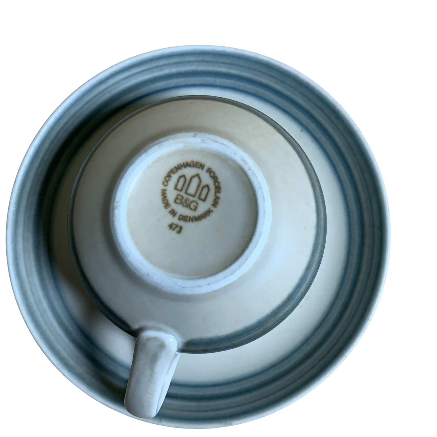 / Bing & Gröndahl 2st Tekoppar & Fat Matt Blå Design B&G Koppar