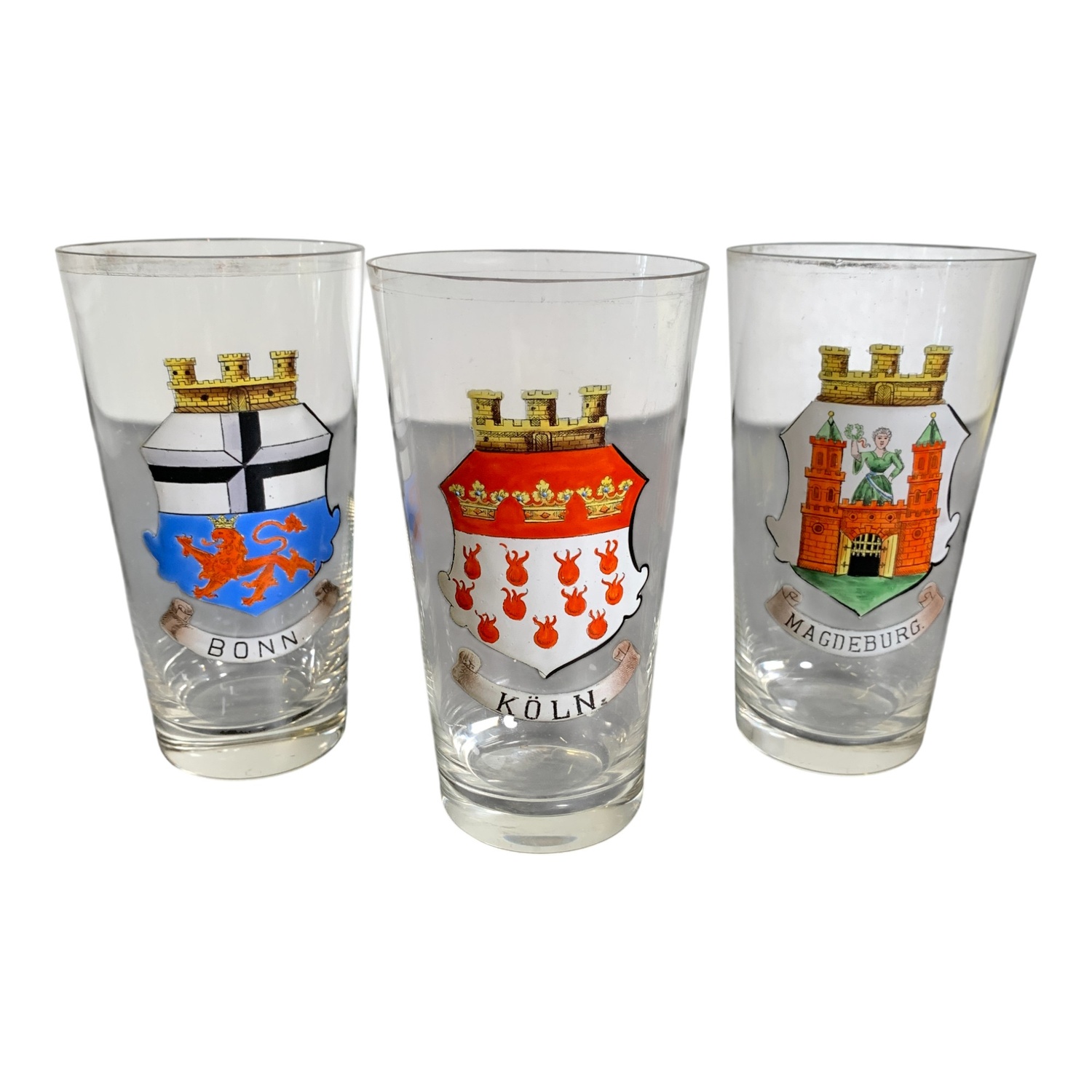 Dricksglas 3st Glas Bonn Köln Magdenburg Stadsvapen Motiv Vintage Design Retro