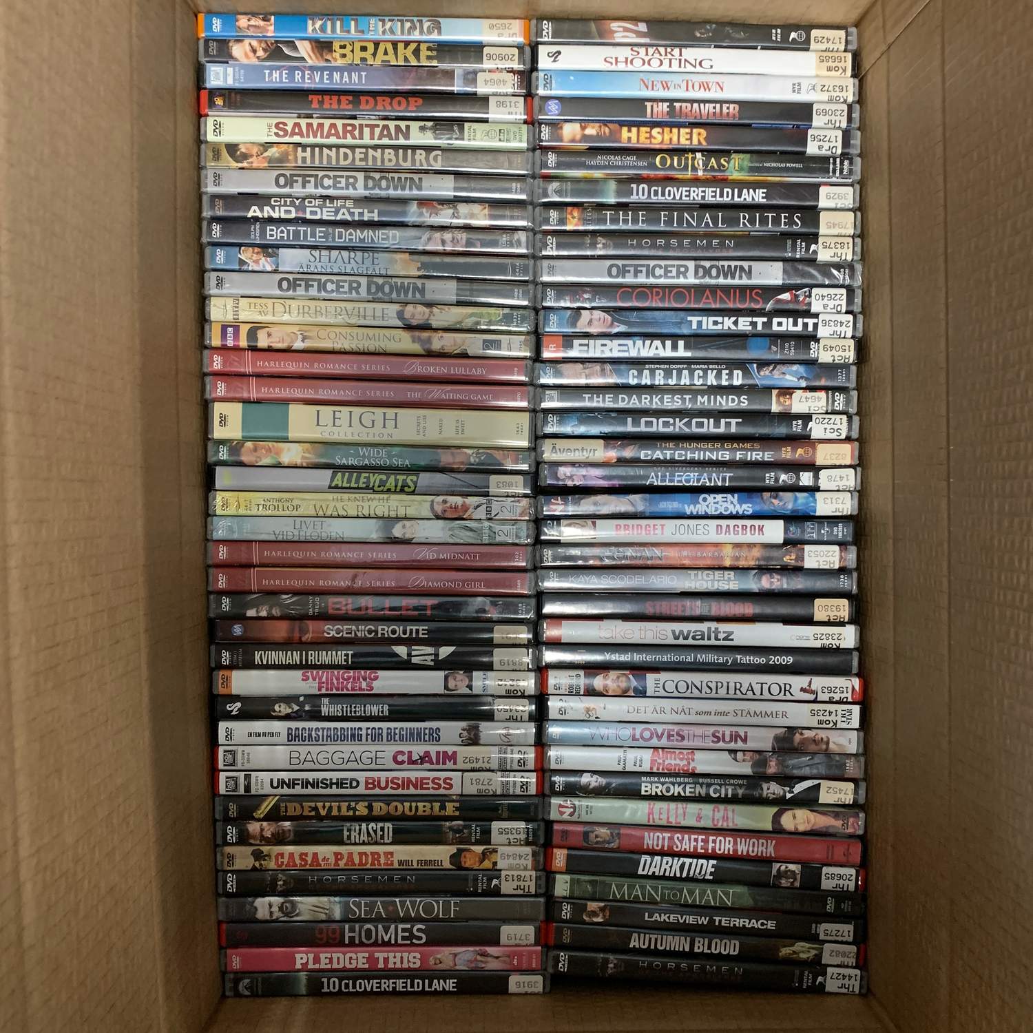 Du får alla filmerna som syns på bilderna – totalt ca 150 st DVD.Filmerna ligger i två lager i kartongen,…