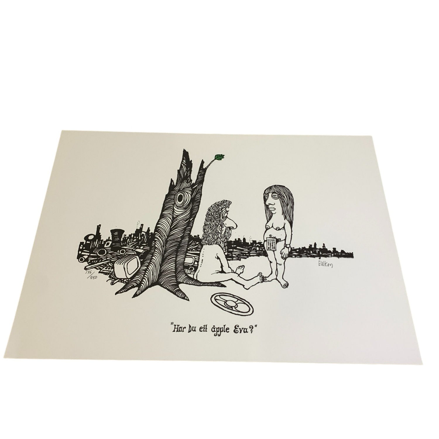 ”Har du ett äpple Eva?” av Konstnären och Karikatyrtecknaren Ewert Karlsson.Limiterad till 250 exemplar gjorda.  Speglar konsumtionen, att det inte…
