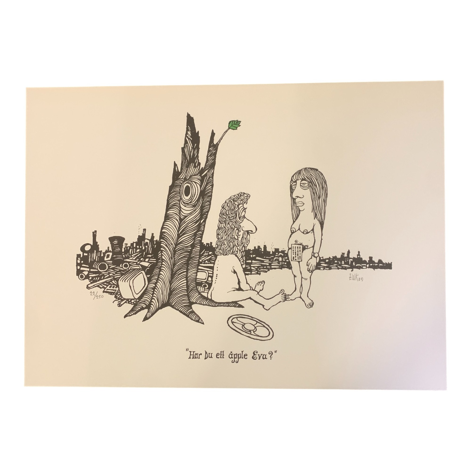 ”Har du ett äpple Eva?” av Konstnären och Karikatyrtecknaren Ewert Karlsson.Limiterad till 250 exemplar gjorda.  Speglar konsumtionen, att det inte…