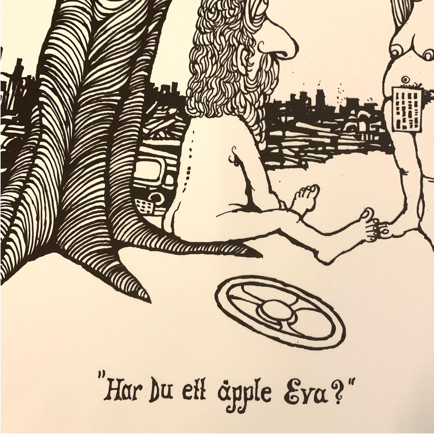 ”Har du ett äpple Eva?” av Konstnären och Karikatyrtecknaren Ewert Karlsson.