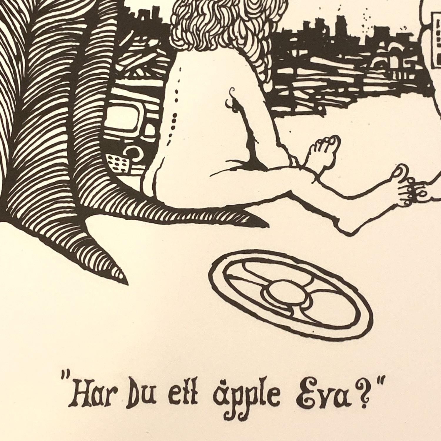 ”Har du ett äpple Eva?” av Konstnären och Karikatyrtecknaren Ewert Karlsson.