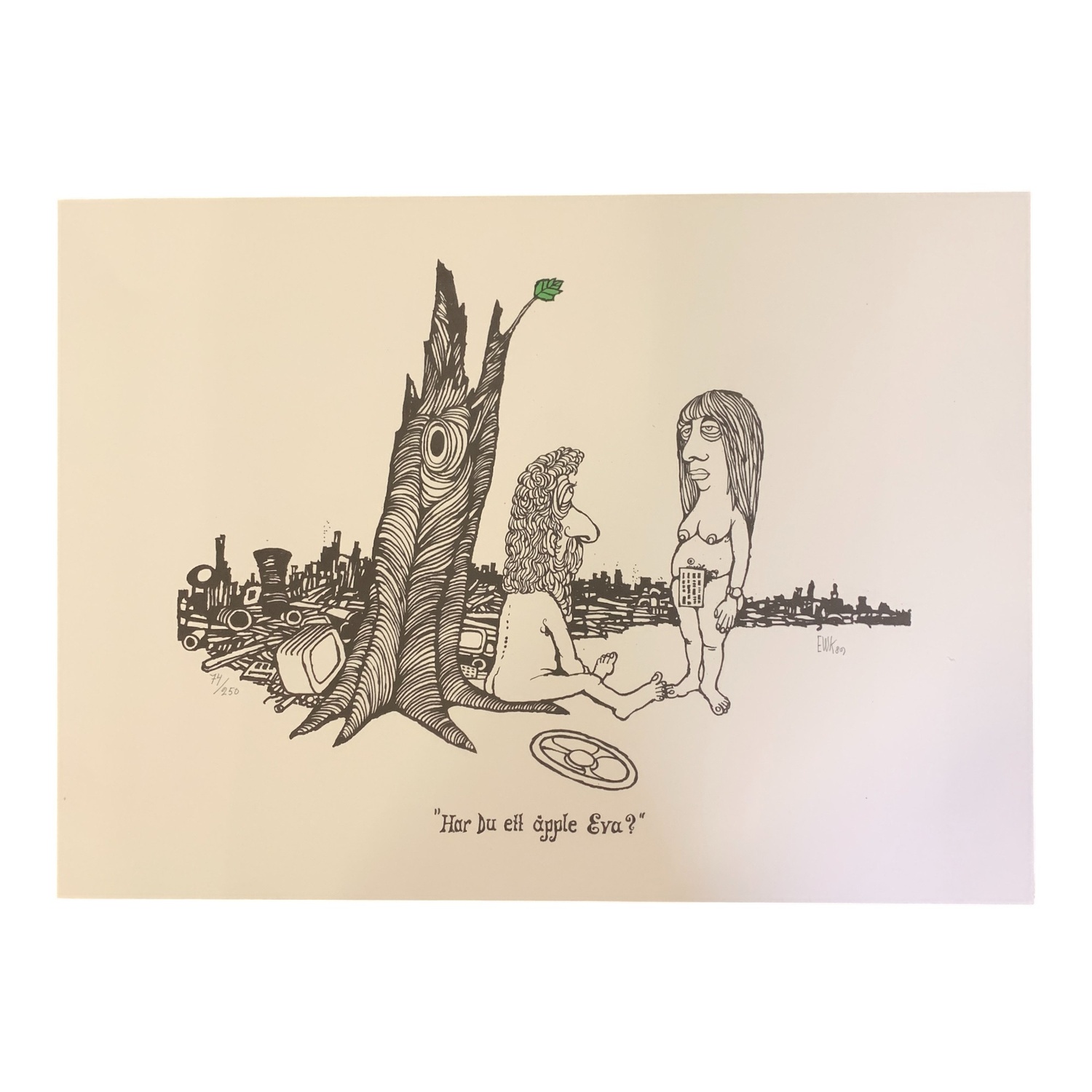 ”Har du ett äpple Eva?” av Konstnären och Karikatyrtecknaren Ewert Karlsson.Limiterad till 250 exemplar gjorda.  Speglar konsumtionen, att det inte…