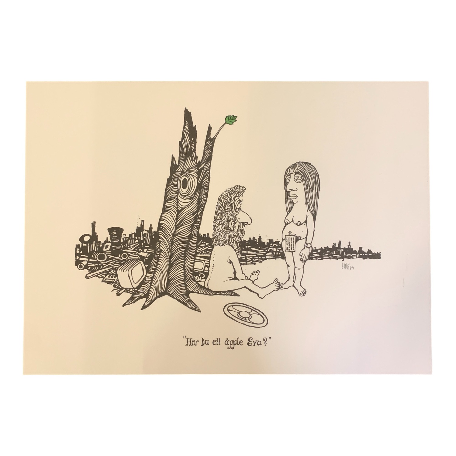 ”Har du ett äpple Eva?” av Konstnären och Karikatyrtecknaren Ewert Karlsson.Limiterad till 250 exemplar gjorda.  Speglar konsumtionen, att det inte…