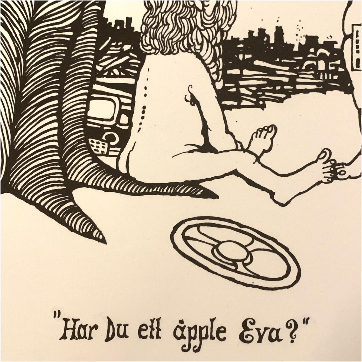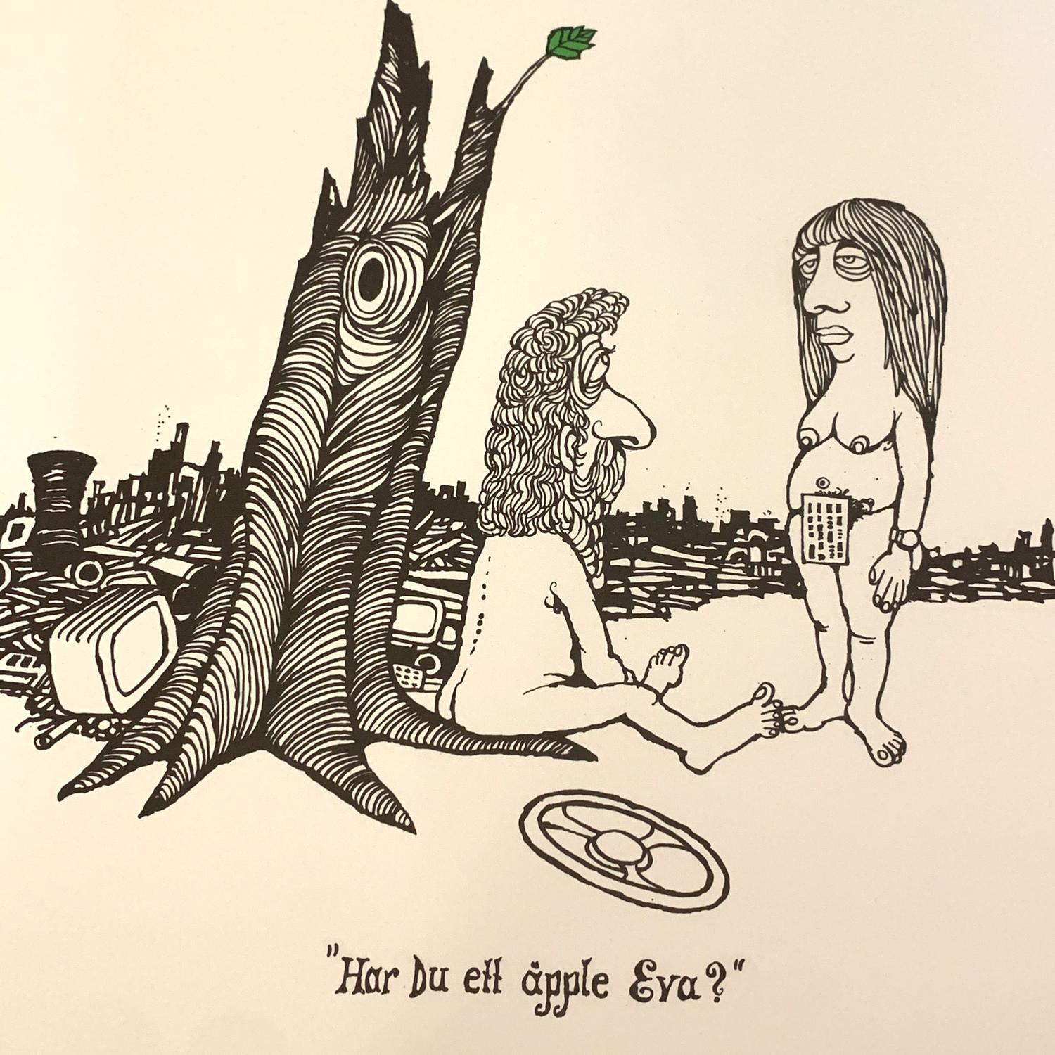”Har du ett äpple Eva?” av Konstnären och Karikatyrtecknaren Ewert Karlsson.