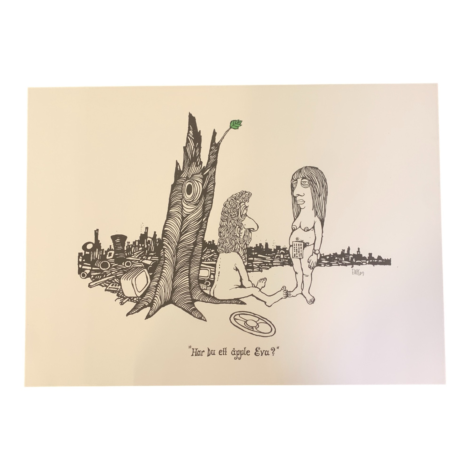 ”Har du ett äpple Eva?” av Konstnären och Karikatyrtecknaren Ewert Karlsson.Limiterad till 250 exemplar gjorda.  Speglar konsumtionen, att det inte…