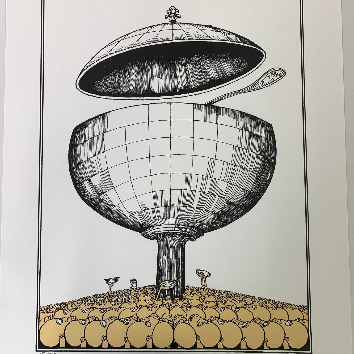 ”Jordens Rikedom” av Konstnären och Karikatyrtecknaren Ewert Karlsson.Limiterad till 200 exemplar gjorda. Speglar snedvrida fördelningen kring rika och fattiga.EWK, Swedish…