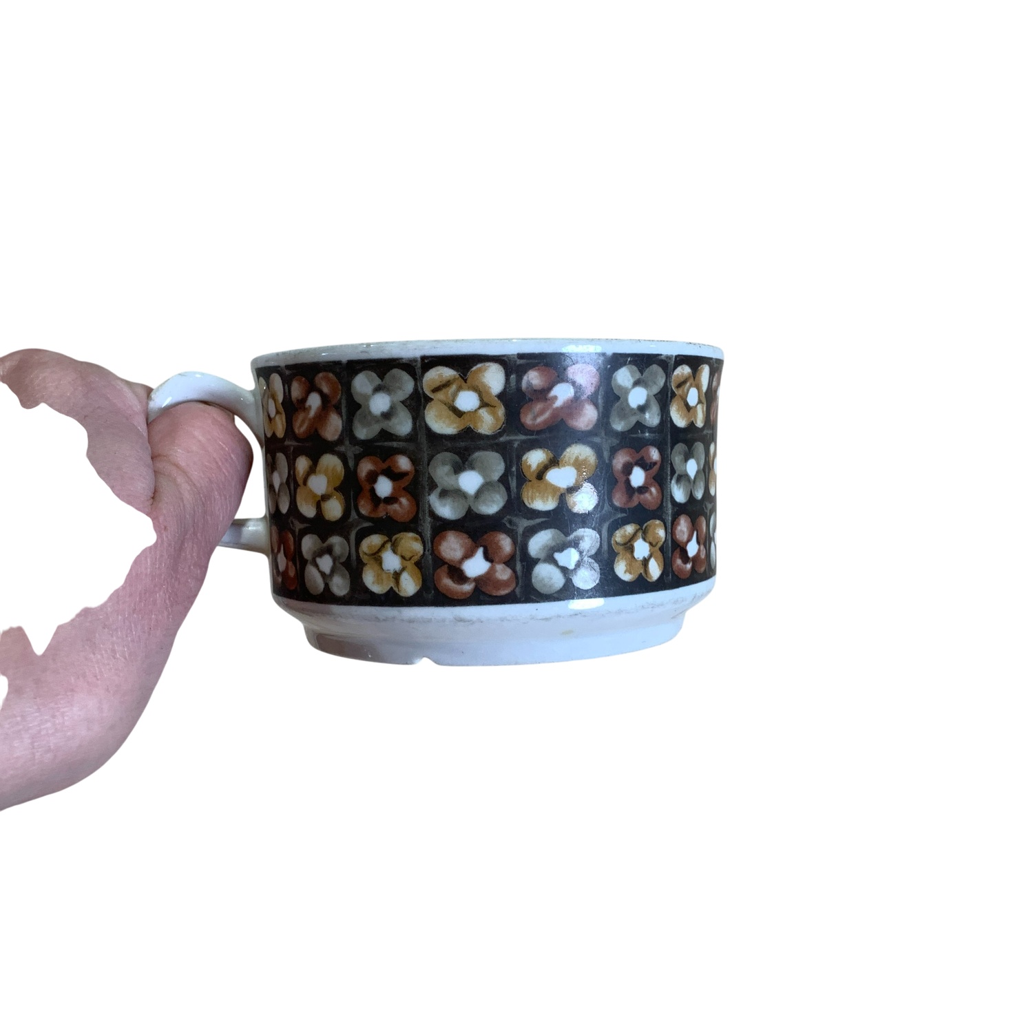 Gefle Porslinsfabrik Mantilj Kopp 10cm Brun Blomma Retro Tekopp mängd