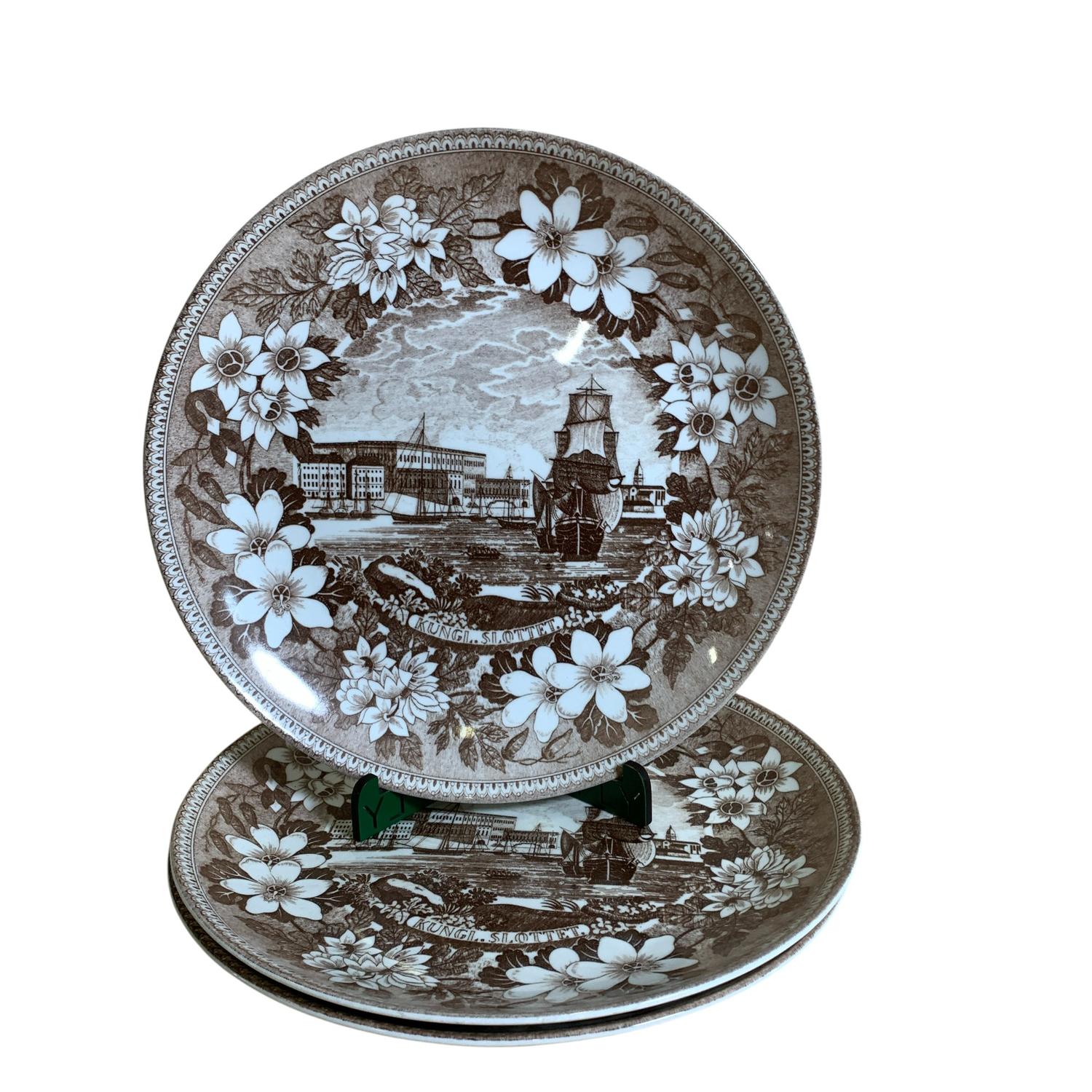 Gustavsberg Benporslin Kungaslott Tallrikar 3st Brun 25cm Mattallrikar