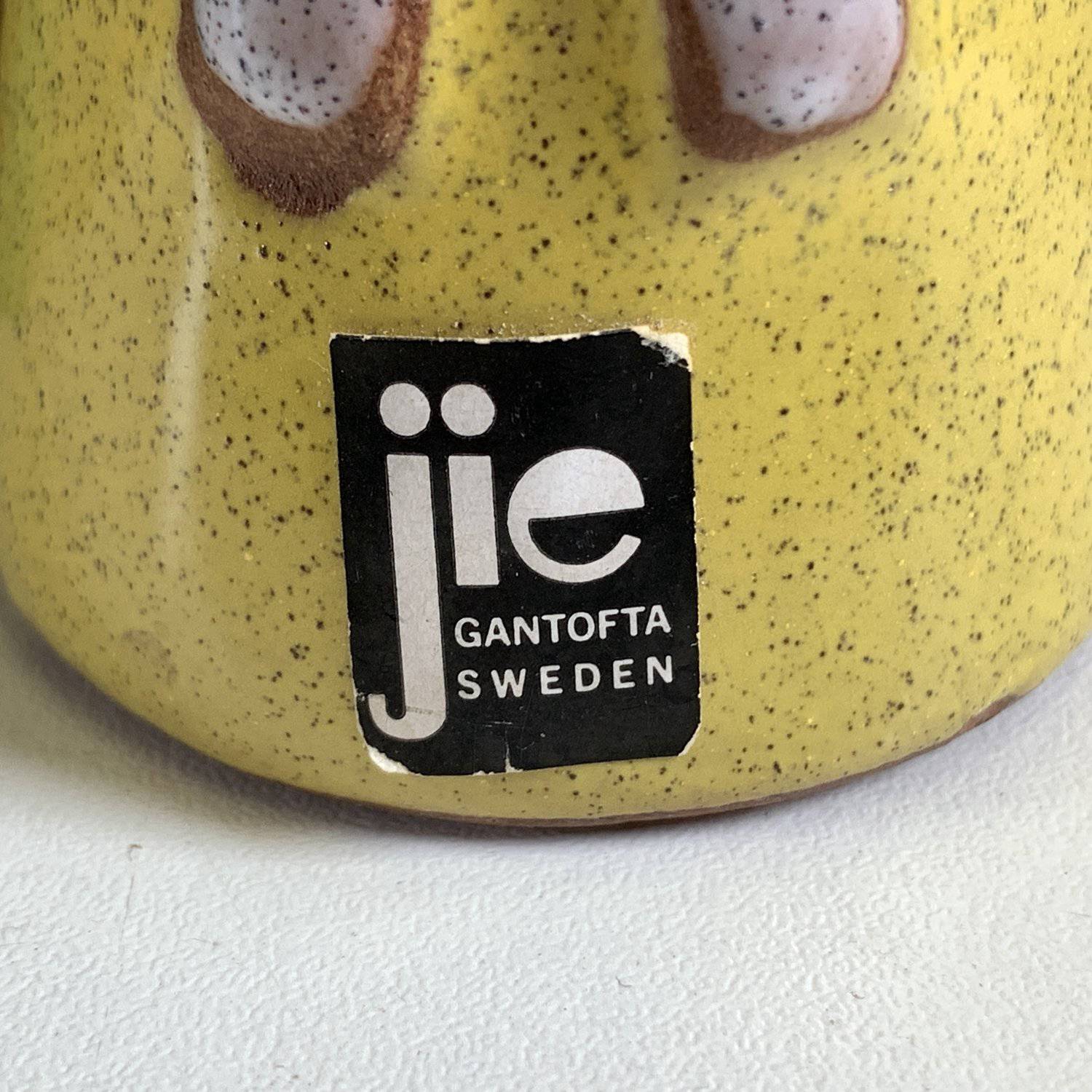 Jie Gantofta Blomsterflicka Figur Keramik Gul Brun Vintage Sverige Figurin Nagg.