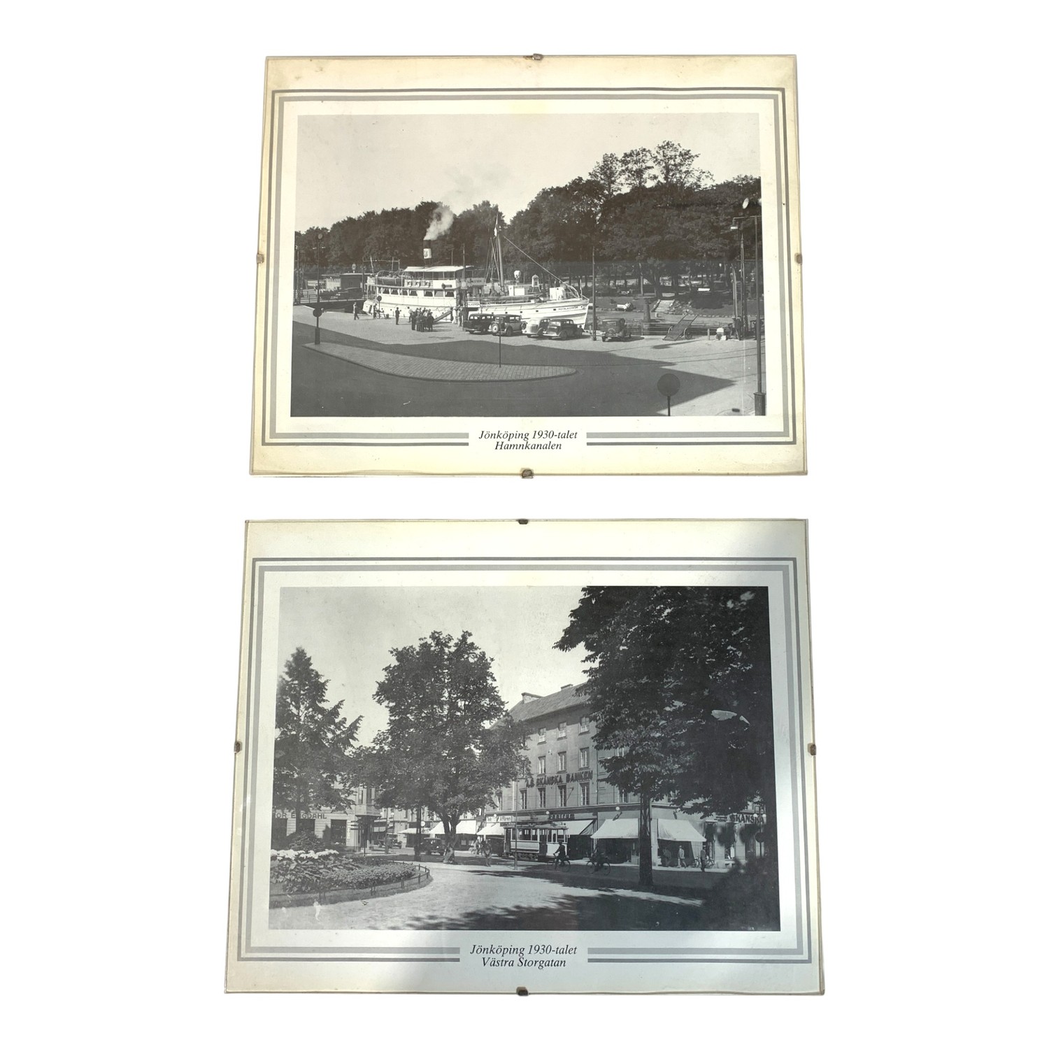 / Jönköping 1930-talet 2st Tavla Hamnkanalen Västra Storgatan ca 30x24cm