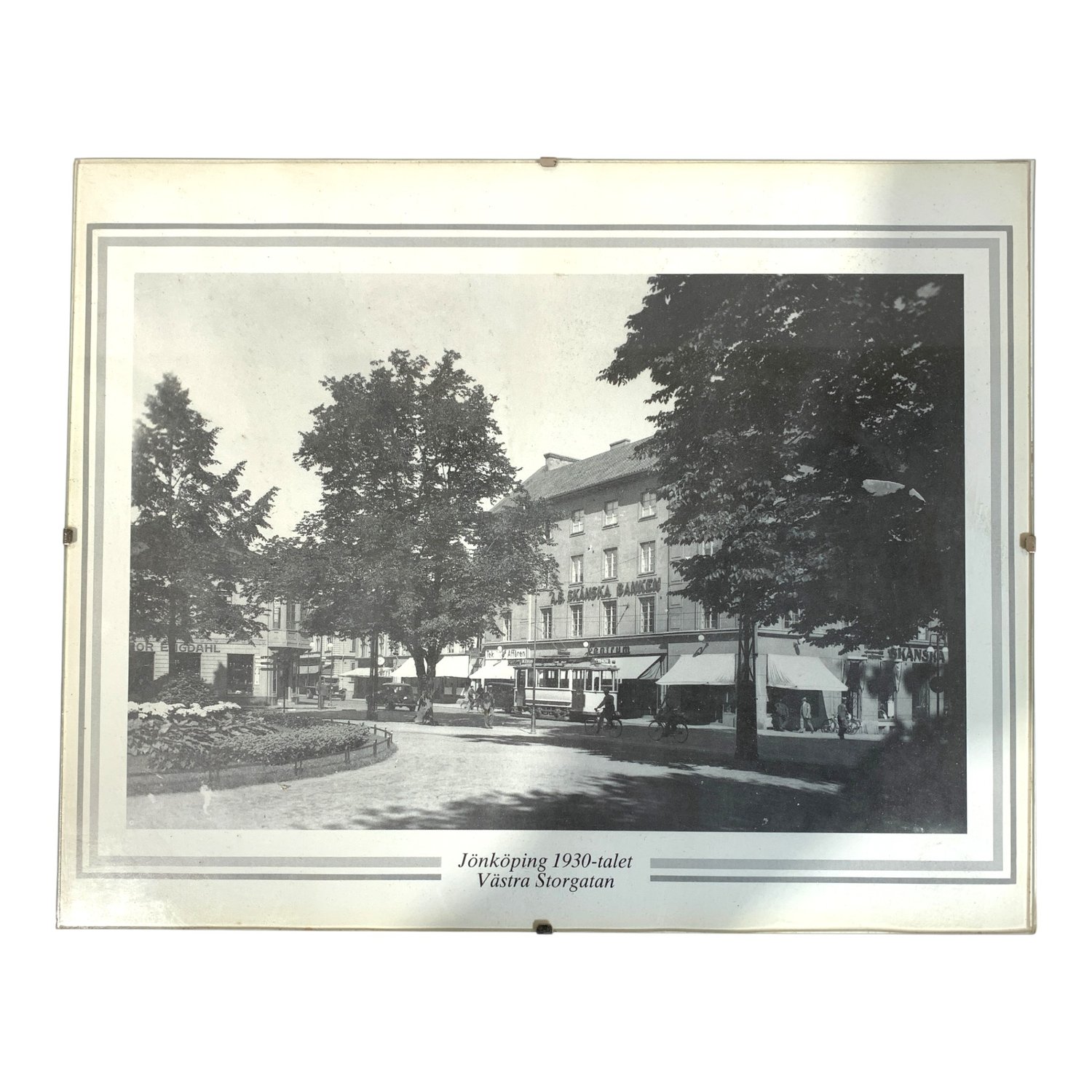 Jönköping 1930-talet 2st Tavla Hamnkanalen Västra Storgatan ca 30x24cm