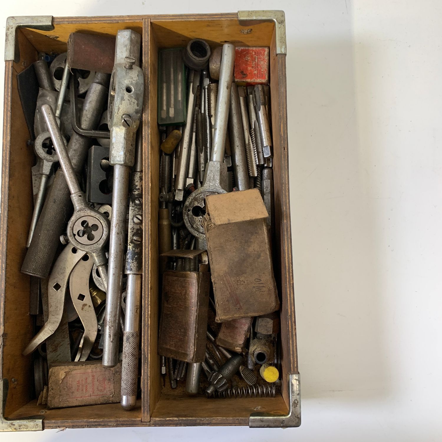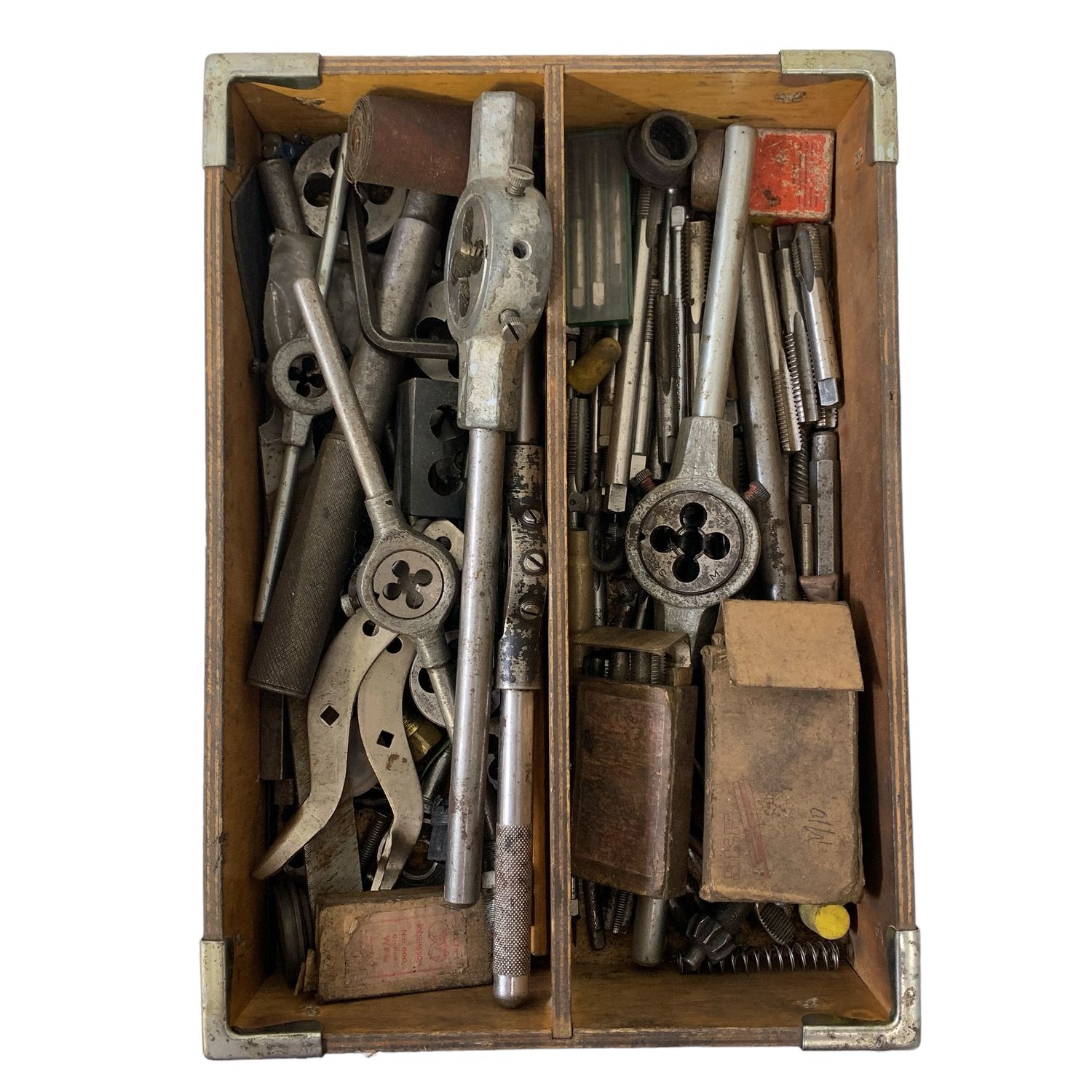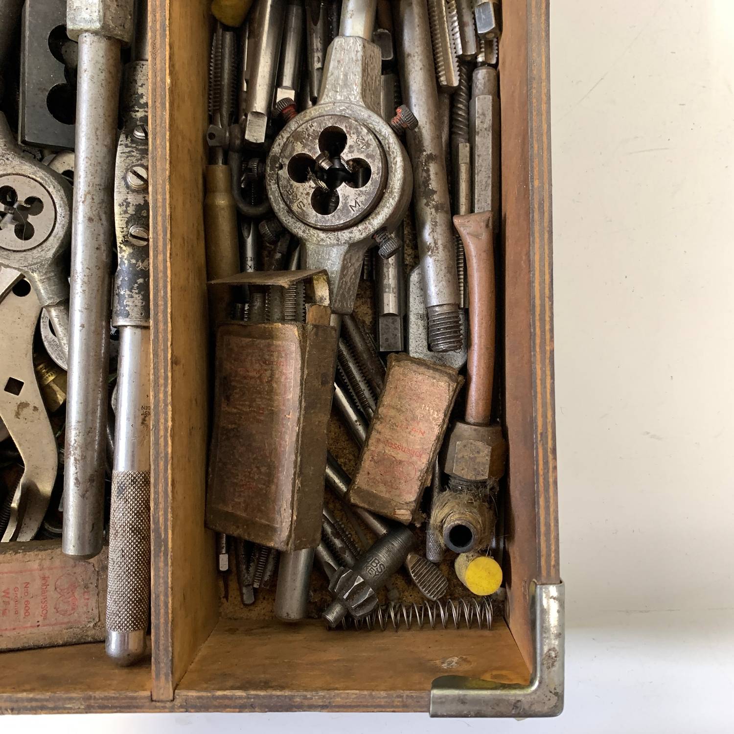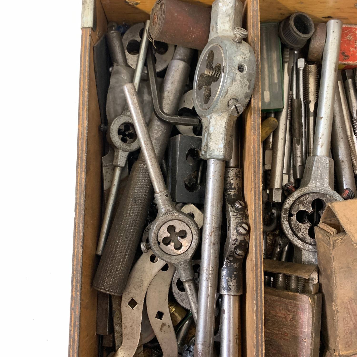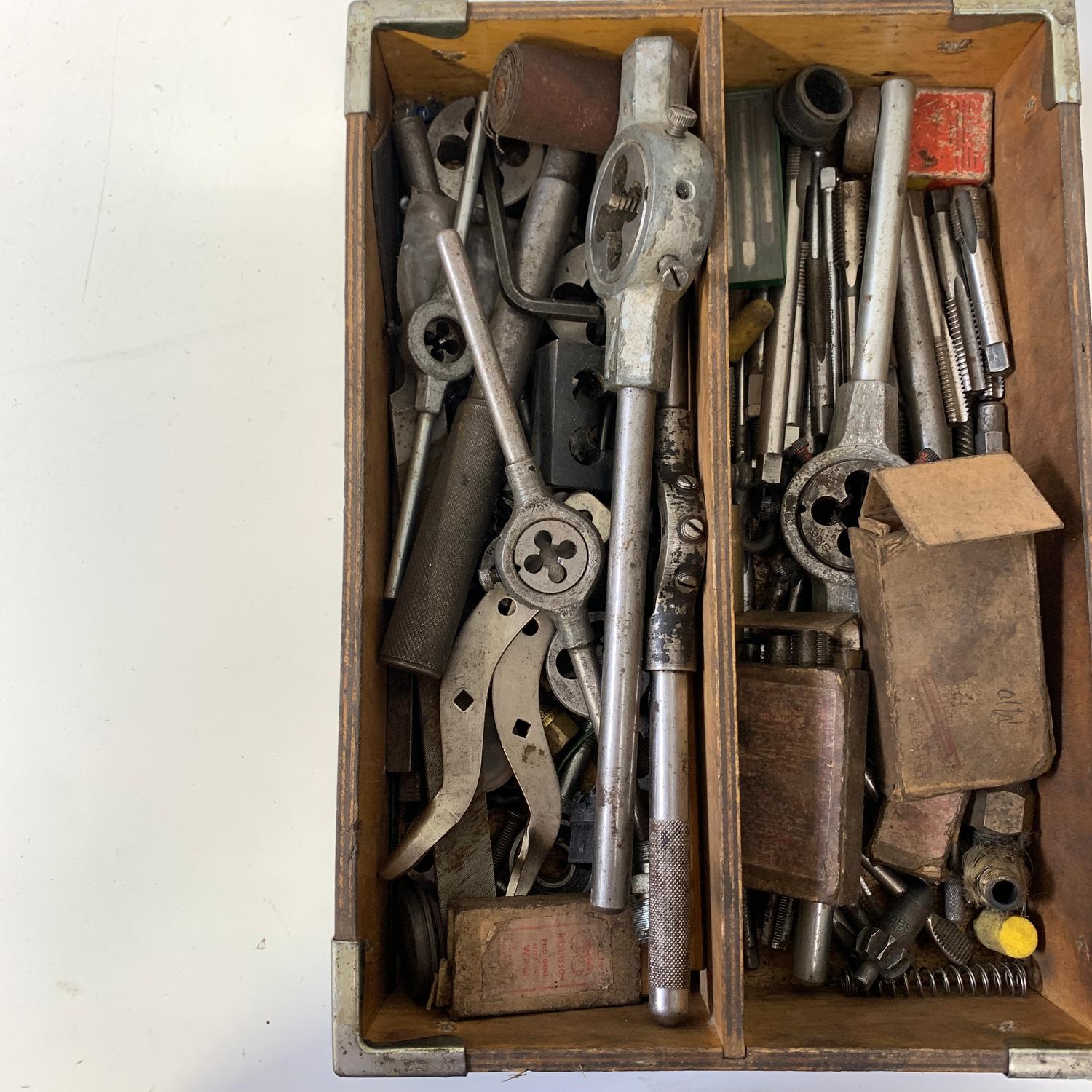 / Låda med Verktyg Blandat Gängtappar Gängsnitt Gäng Tapp Snitt Fil Borr