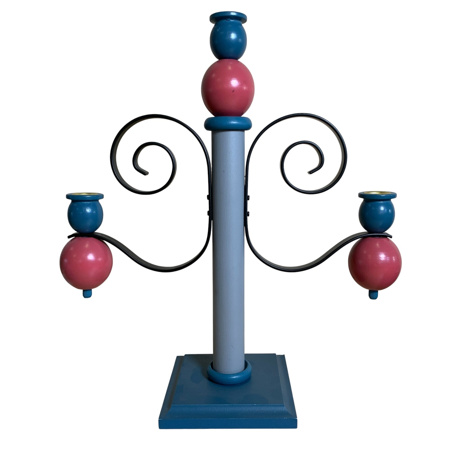 / Lindsdal Stake Sverige Ljusstake Blå 40cm Kronljusstake Trä Rosa