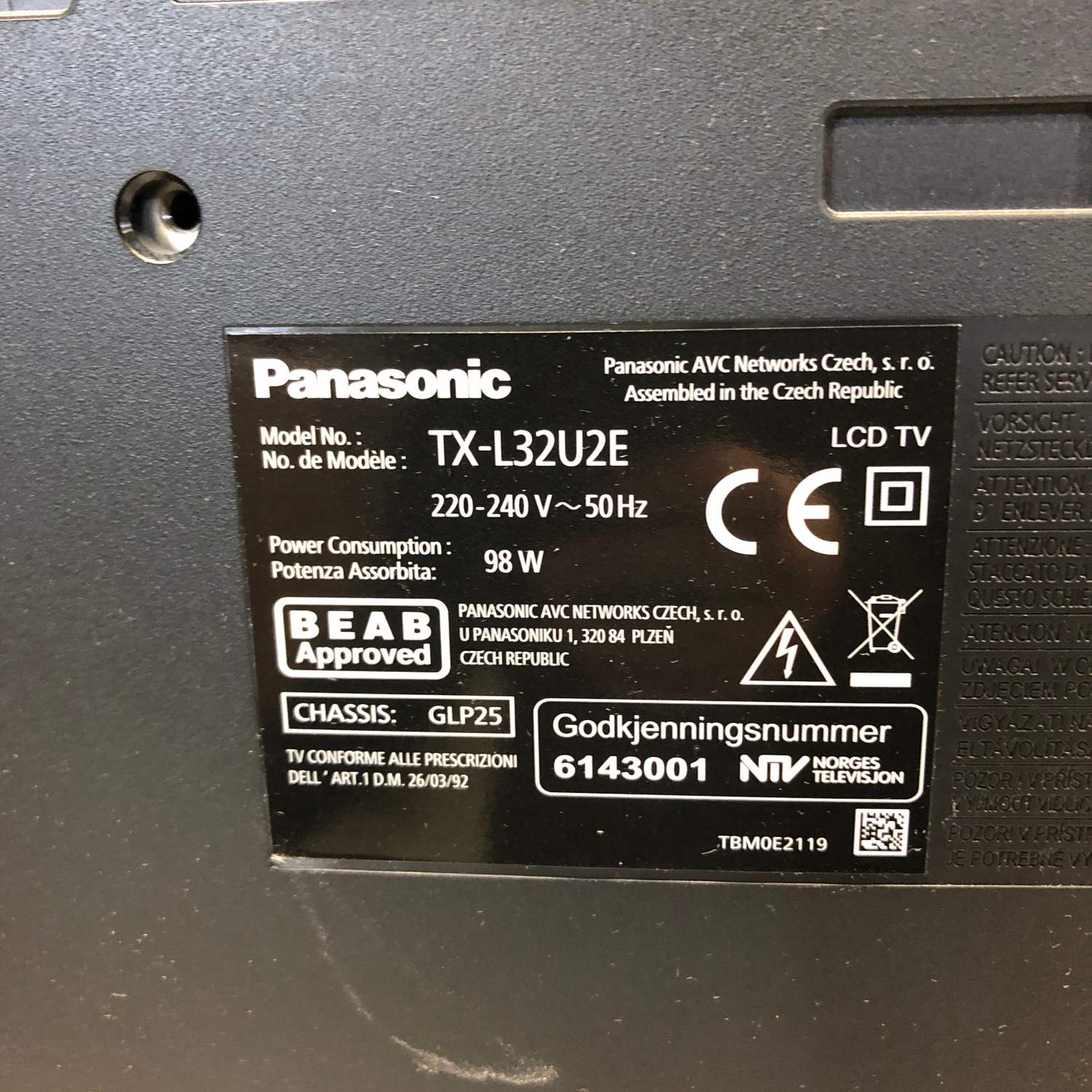 / Panasonic Viera TX-L32U2E HD 32″ Tv med Fjärrkontroll