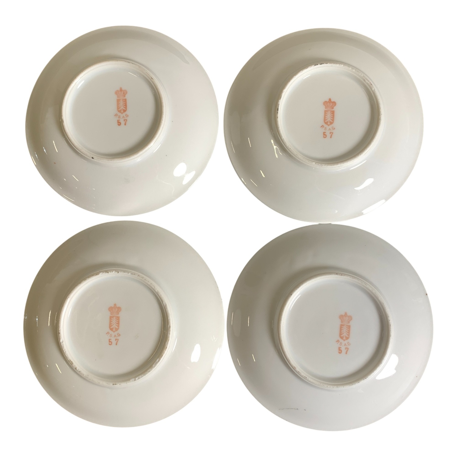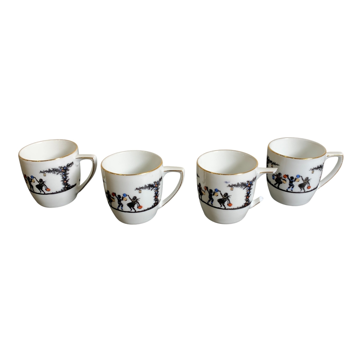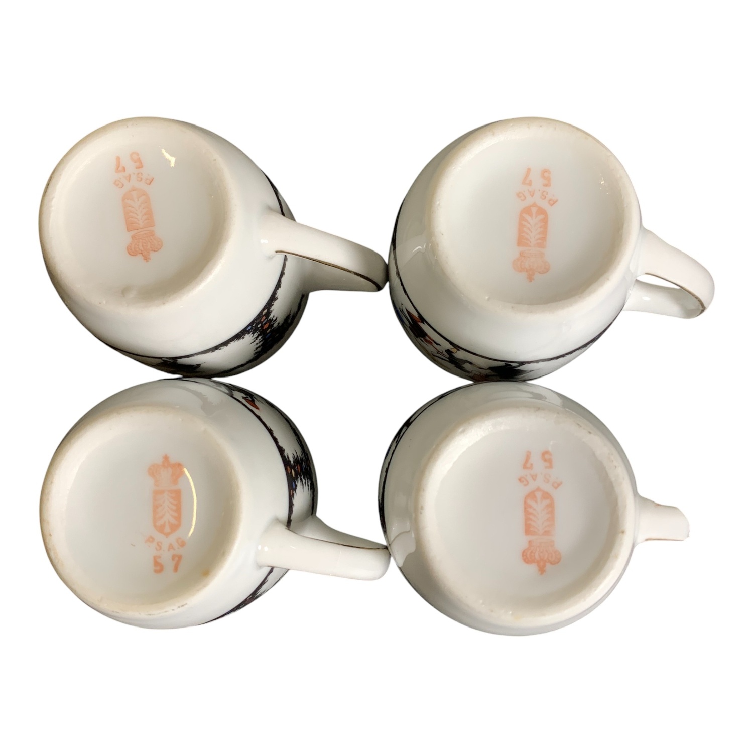 En av kopparnas öra är trasig.Kopp, höjd ca: 6 cm och diameter ca: 6 cm.Fat, diameter ca: 11 cm.Gräddsnipa, höjd…