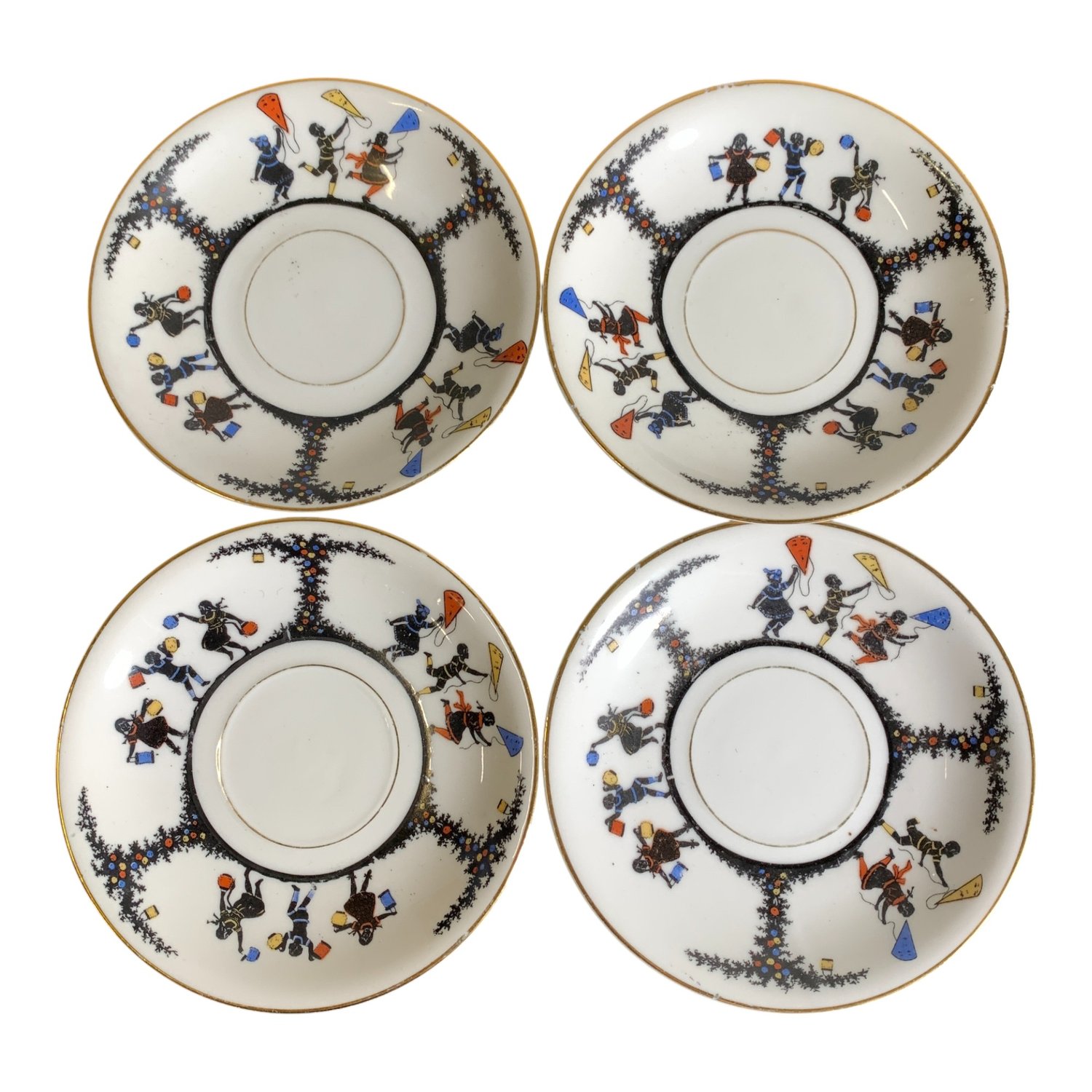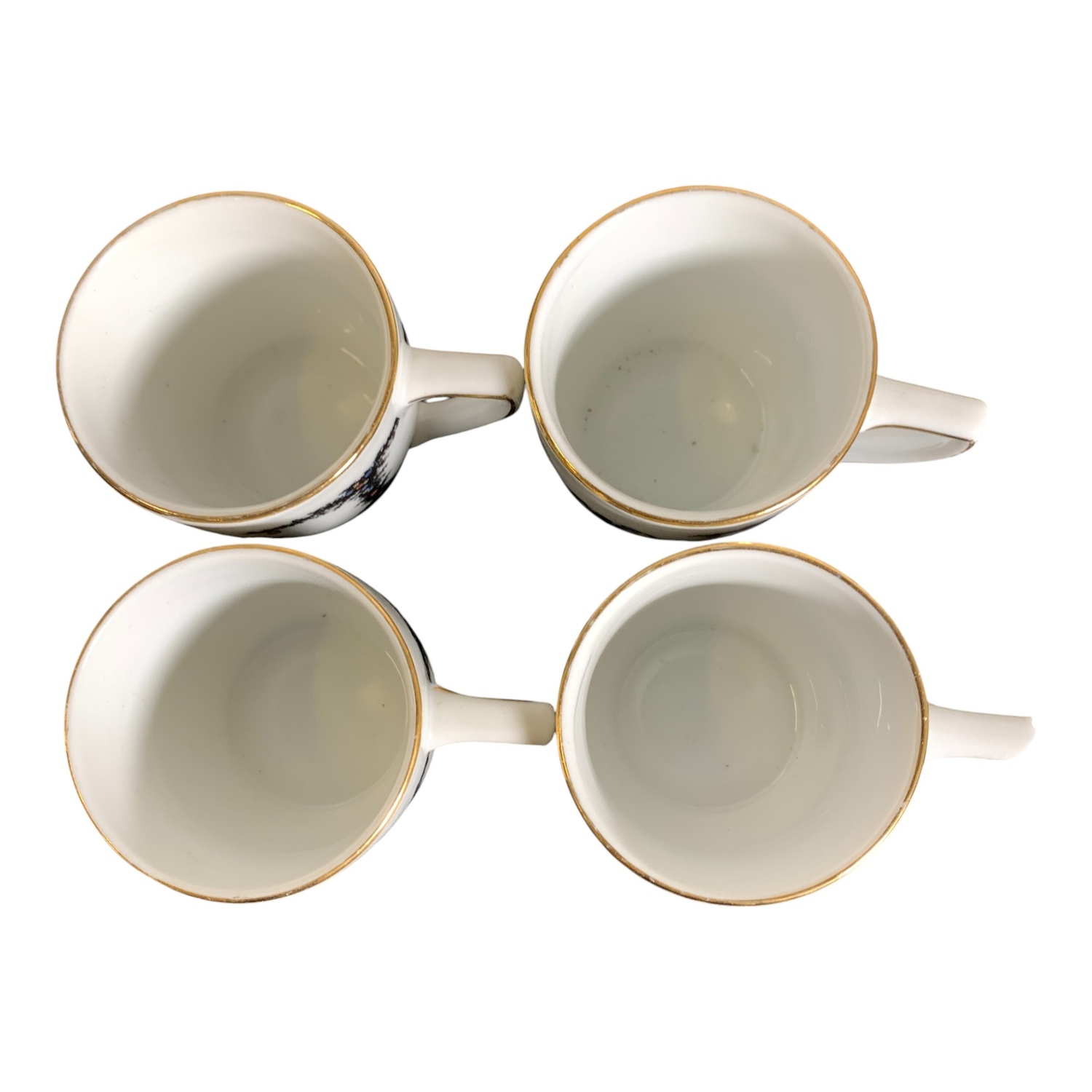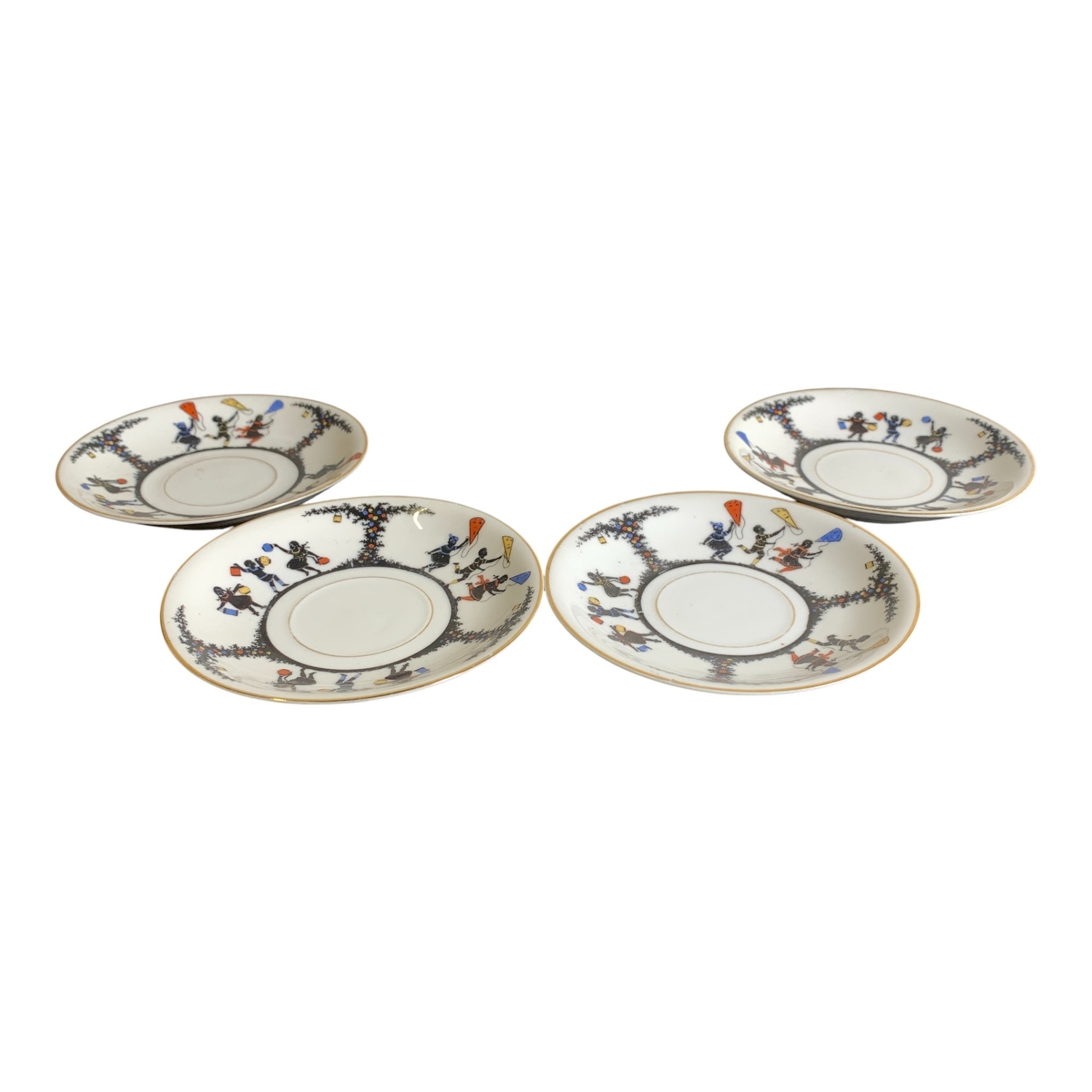En av kopparnas öra är trasig.Kopp, höjd ca: 6 cm och diameter ca: 6 cm.Fat, diameter ca: 11 cm.Gräddsnipa, höjd…