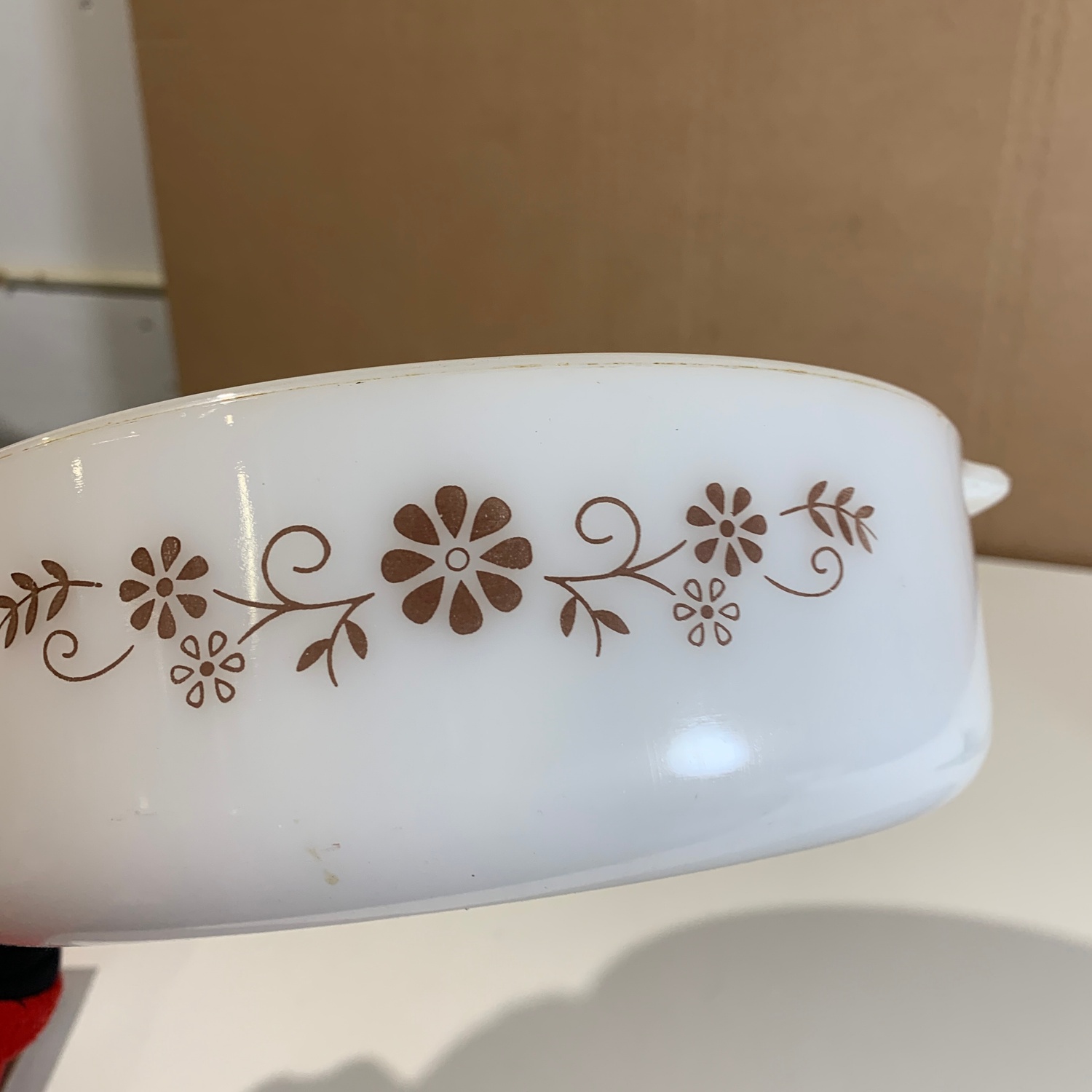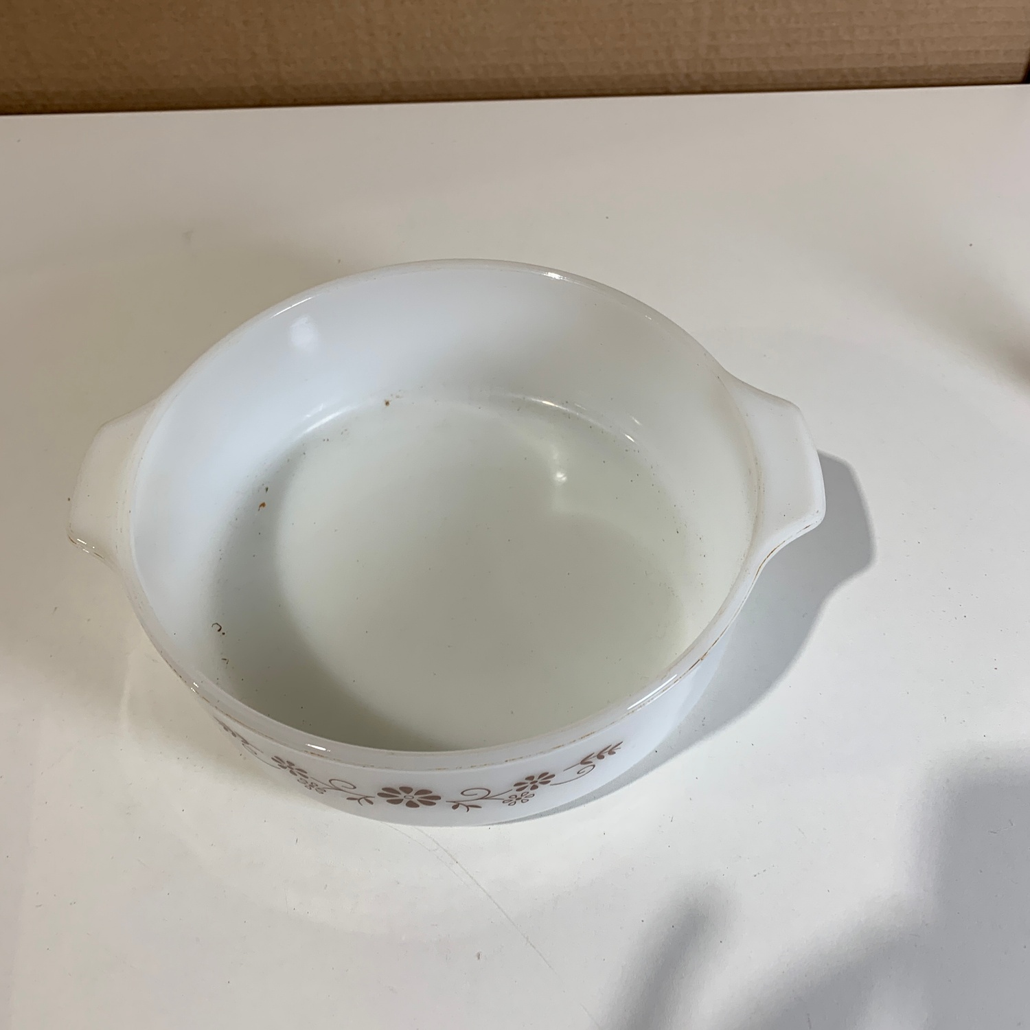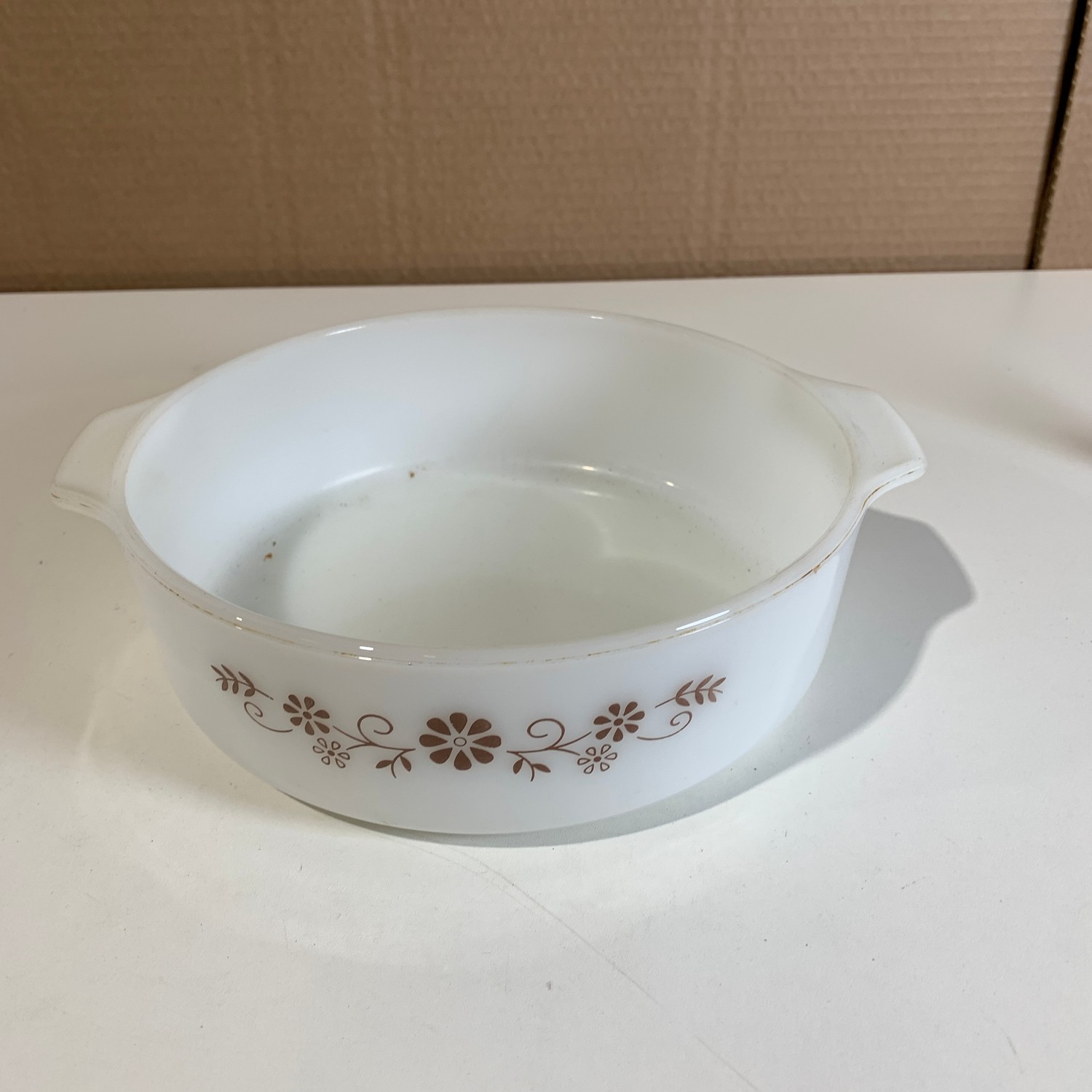 Pyrex Form Vit Glas Retro Bruna Blommor 22cm mängd