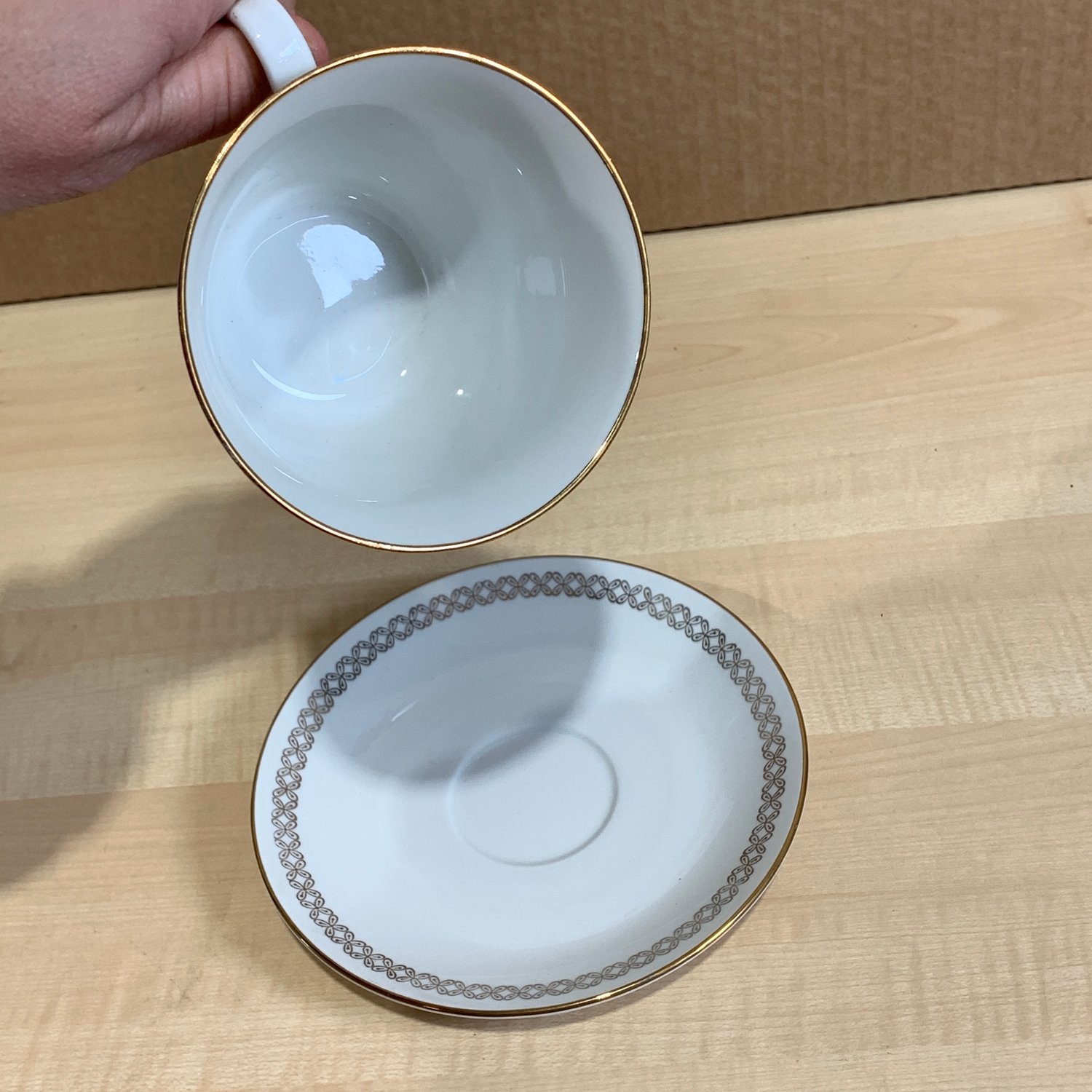 / Rörstrand Gyllen Kopp & Fat Vit Guldkant Retro