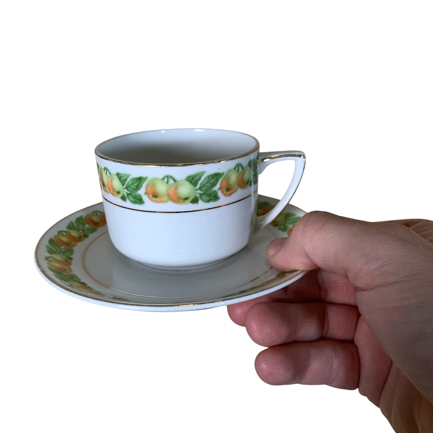 Lite slitage på dekorenFat diameter ca 13cmKopp diameter ca 7,2cmHöjd ca 5cm