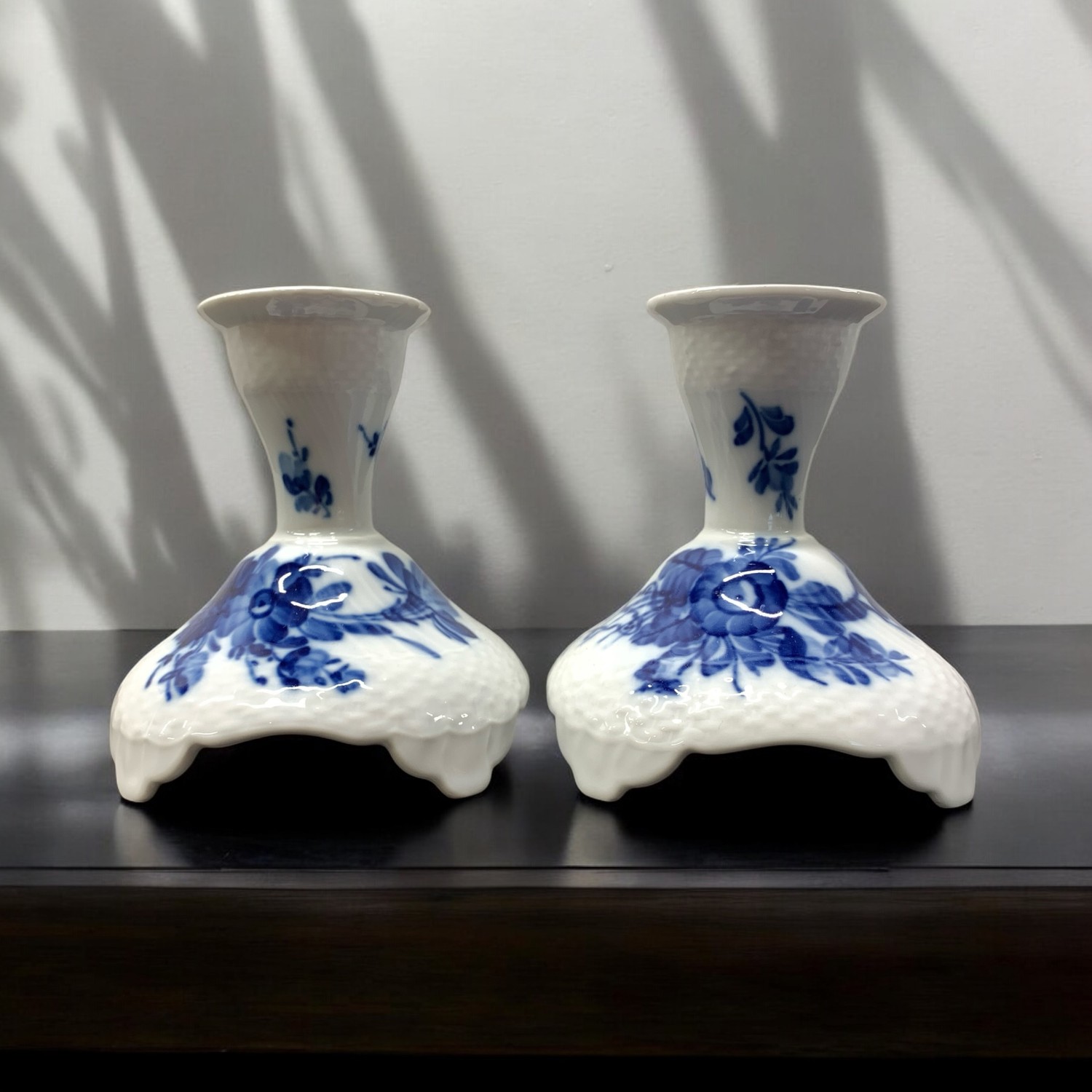 Royal Copenhagen Blå Blomster Ljusstakar 2st Kungligt Danskt Design Vintage