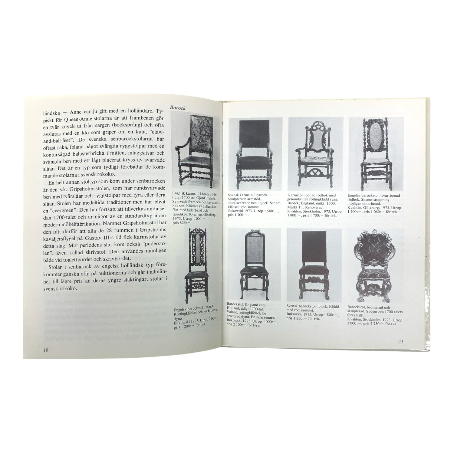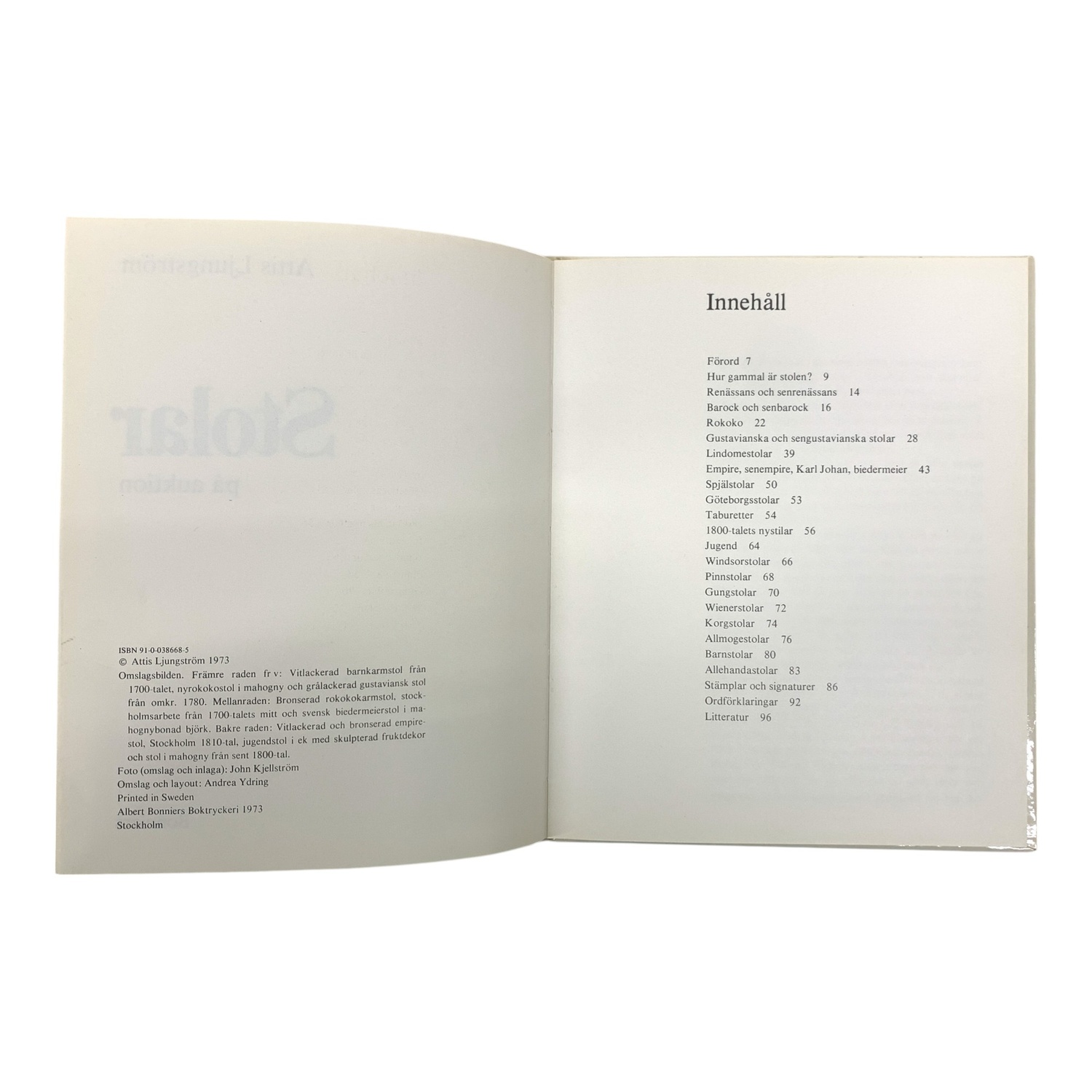 Stolar på auktion Attis Ljungström 1973 Bok