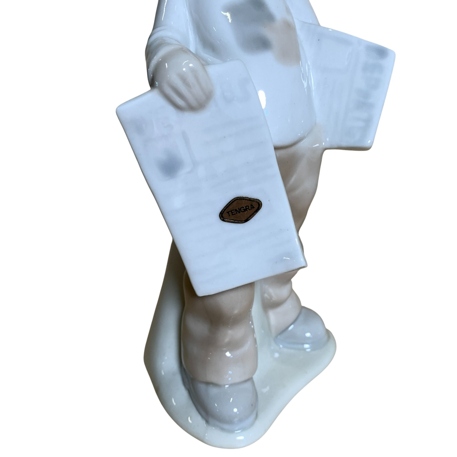 / Tengra Porslinsfigur 22cm Tidningar Grå Vintage