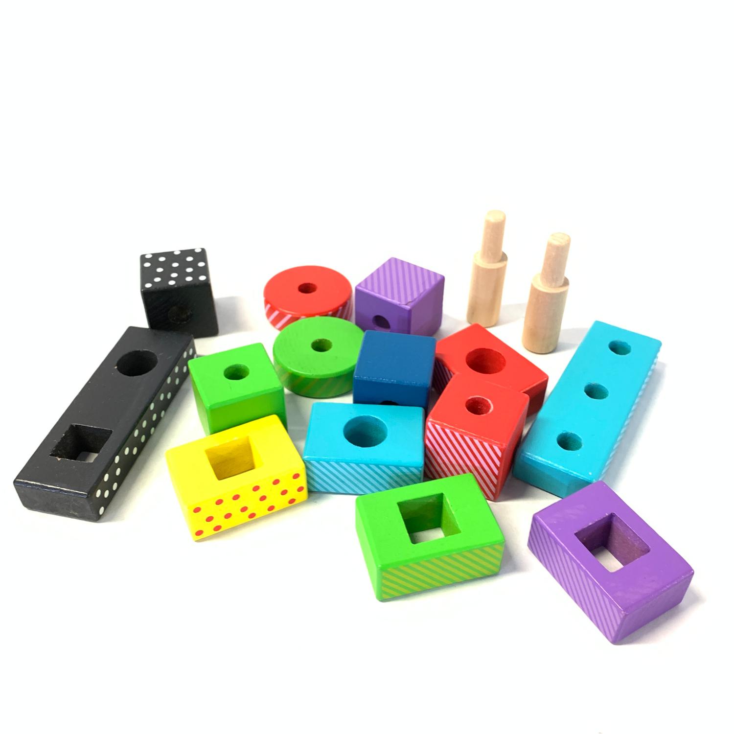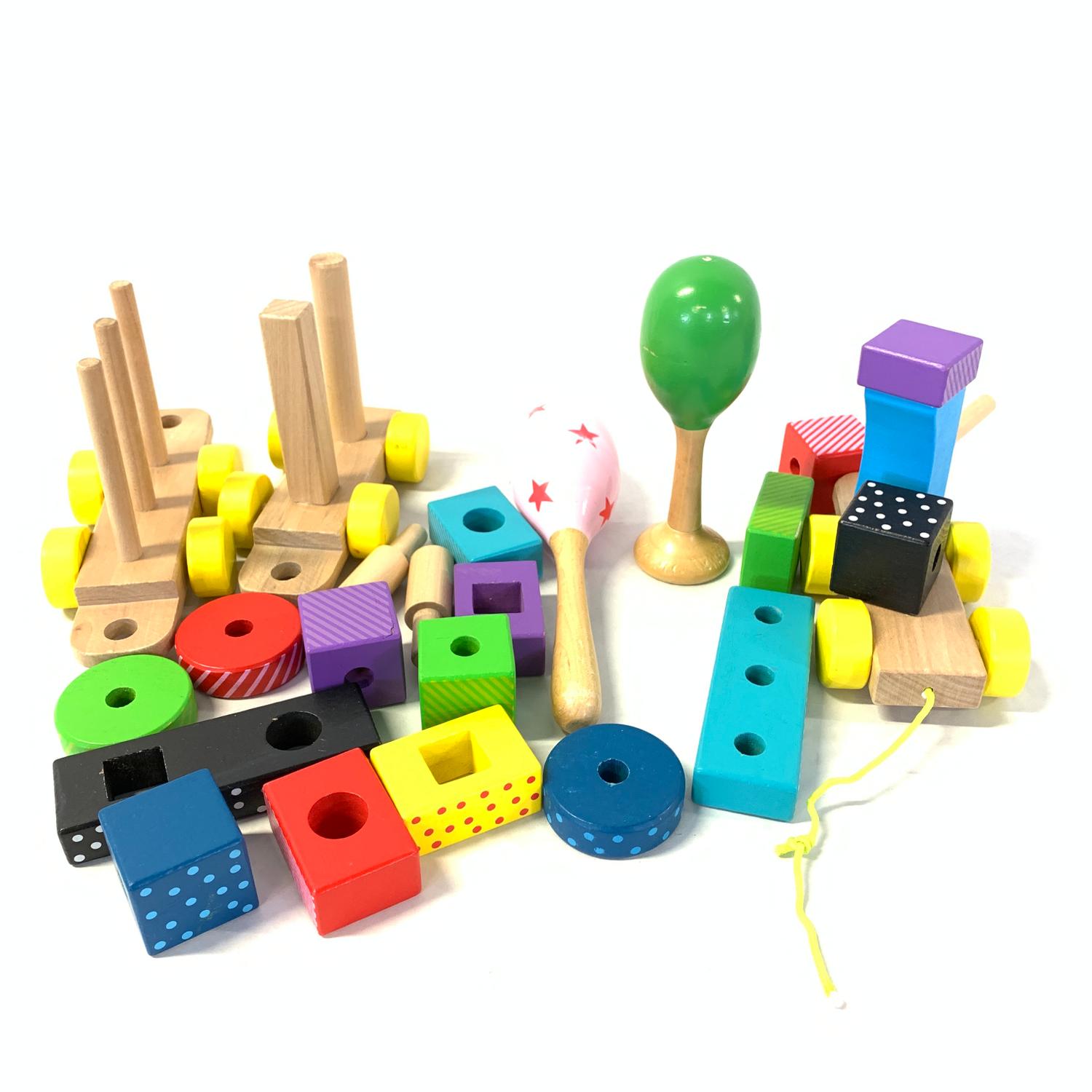 / Träleksaker Klossar Bil Maracas Blå Röd Svart