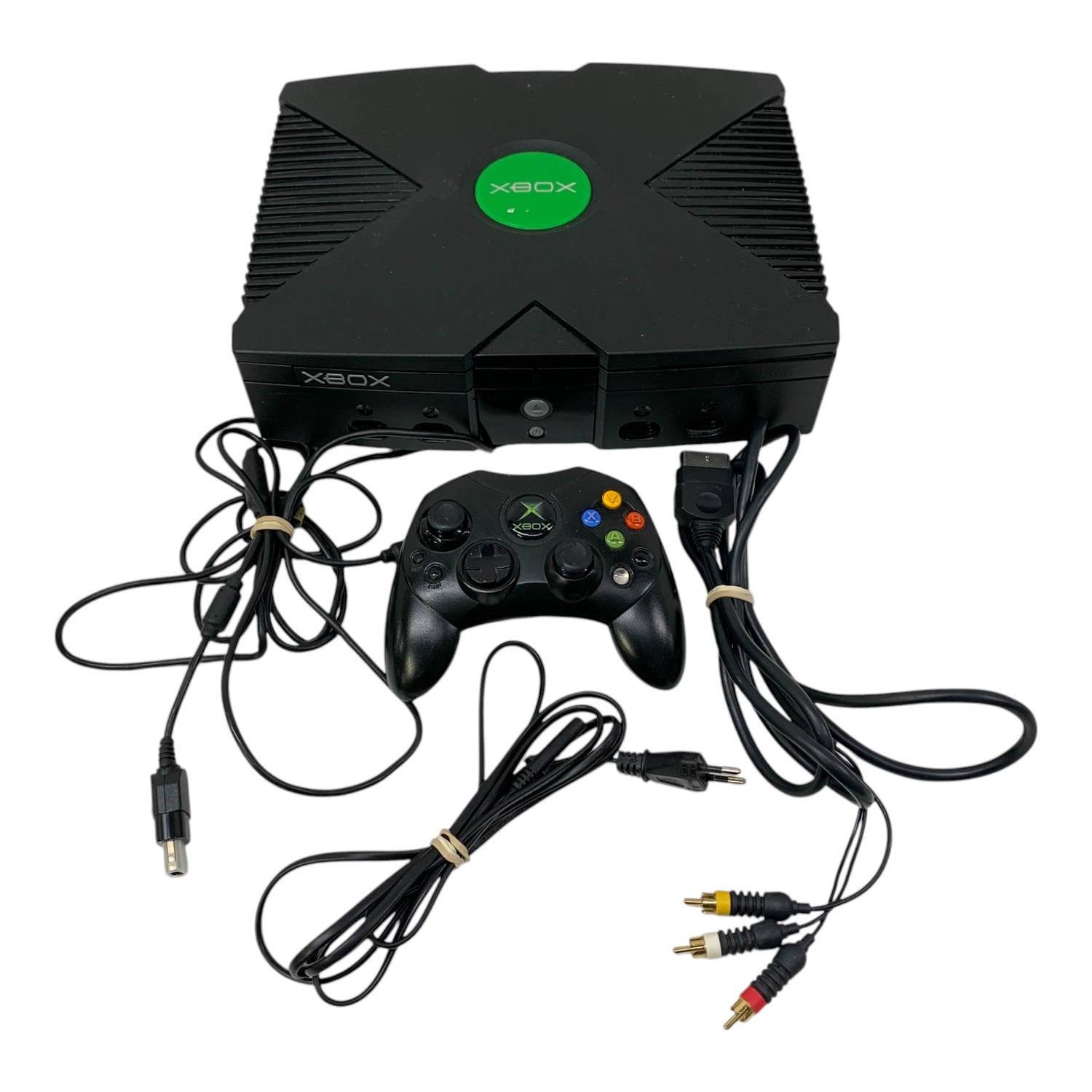Xbox Original Konsol med handkontroll och kablage Vintage Retro Game